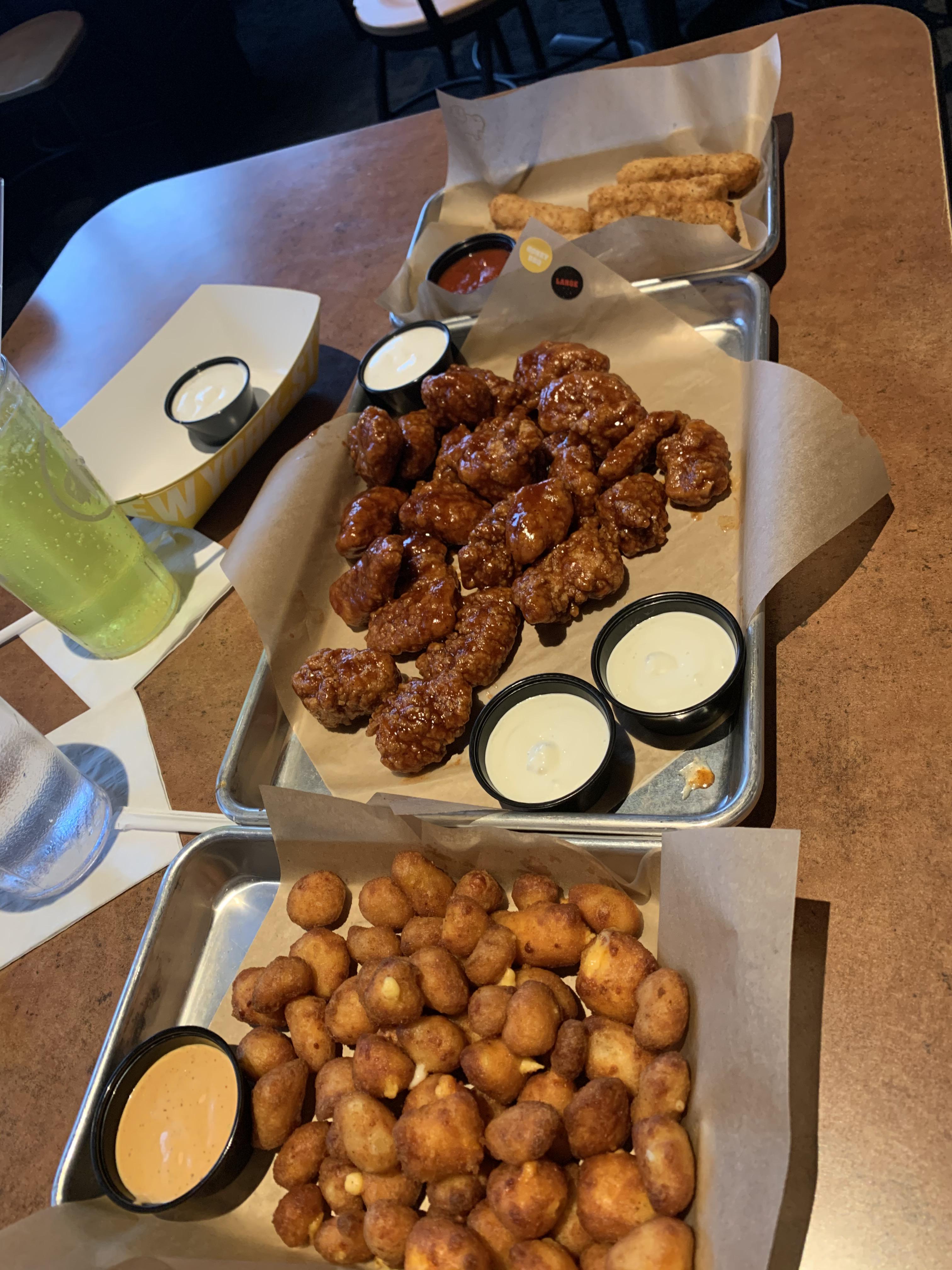 BUFFALO WILD WINGS MUKBANG! (cheddar cheese curds, ultimate nachos, chicken quesadilla, mozz sticks) - Cheddar Cheese Curds Buffalo Wild Wings
